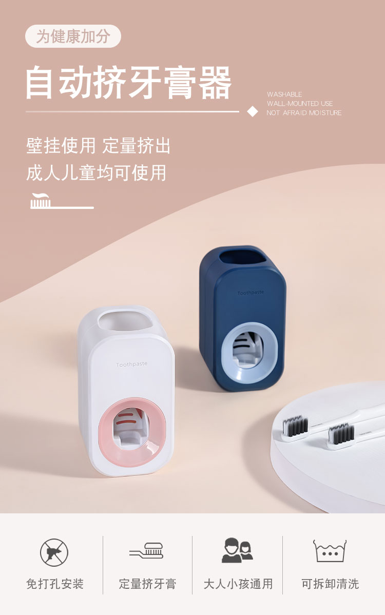 可爱卡通儿童宝宝牙刷牙杯套装洗漱口杯子创意壁挂吸盘式防摔牙缸BH-703 ¥19.40全自动省力挤牙膏器免打孔可拆卸牙膏置物架浴室壁挂式懒人挤压器壁挂式挤牙膏器,ABS材质,光滑表面,耐脏防腐。定量不浪费,每次挤出牙膏都是同等用量;弹性牙膏入口偶,食品级硅胶材质,装入方便,稳固不松动;可拆卸清洗,干净卫生;成人儿童通用,适合大部分牙膏使用。