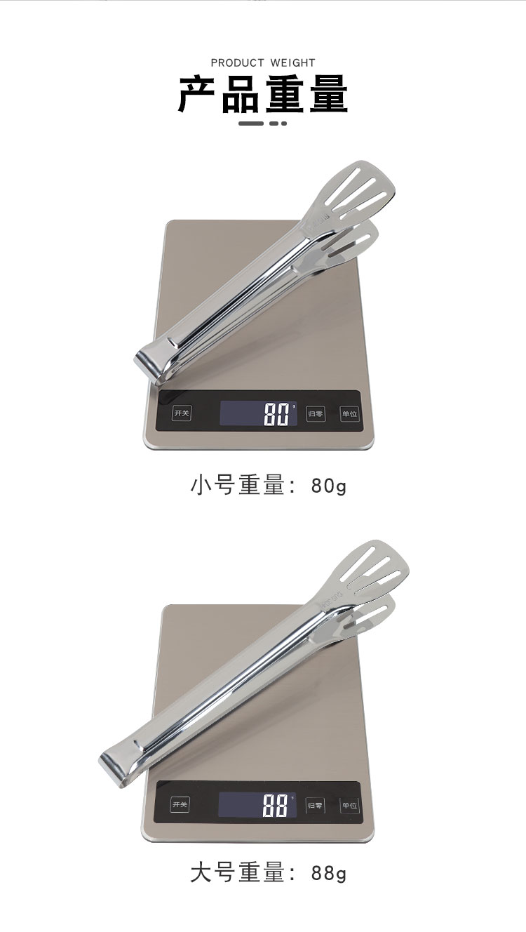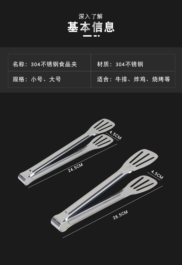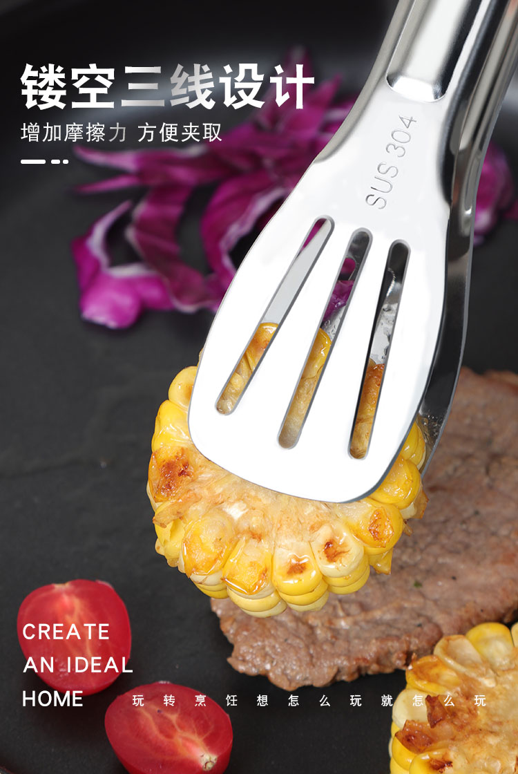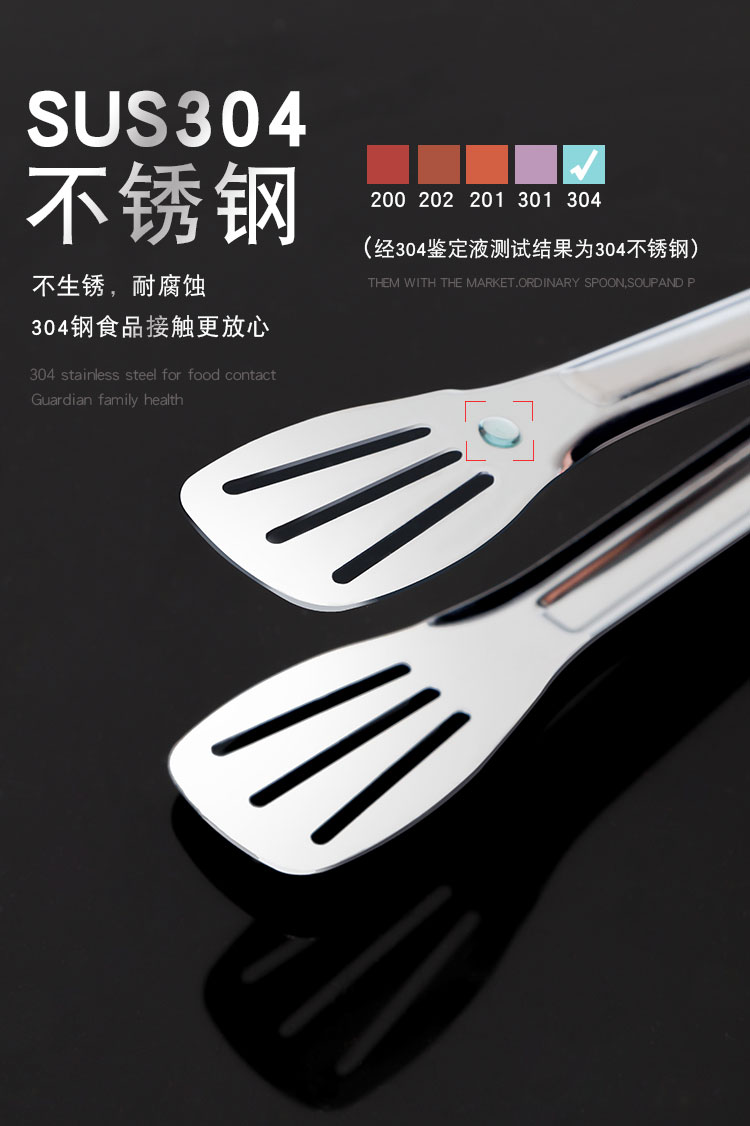 304不锈钢牛排夹食品夹披萨铲烧烤夹烤肉夹子面包夹煎鱼铲手抓饼铲夹 ¥10.60加厚304不锈钢食品夹厨房家用夹牛排烤肉防滑沥油夹三线镂空烧烤夹加厚SUS304不锈钢食品夹子,面包烧烤牛排烤肉馒头食物夹,食品好助手,一步到位,搞定各种美食;厨房家用商用;防滑沥油,夹取稳固:轻松夹爪,省时省力;镜面抛光;清洗方便